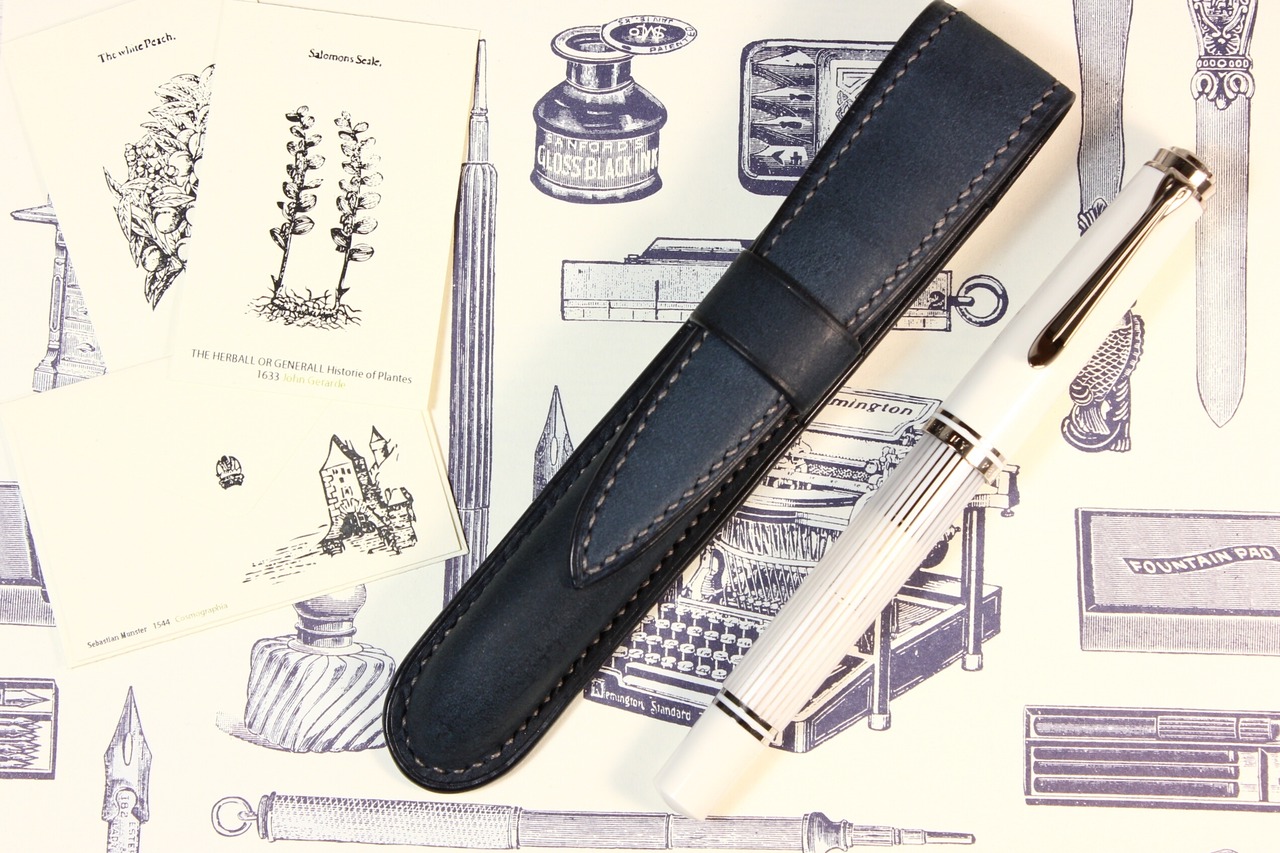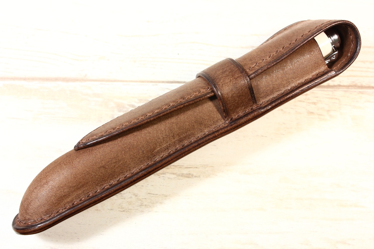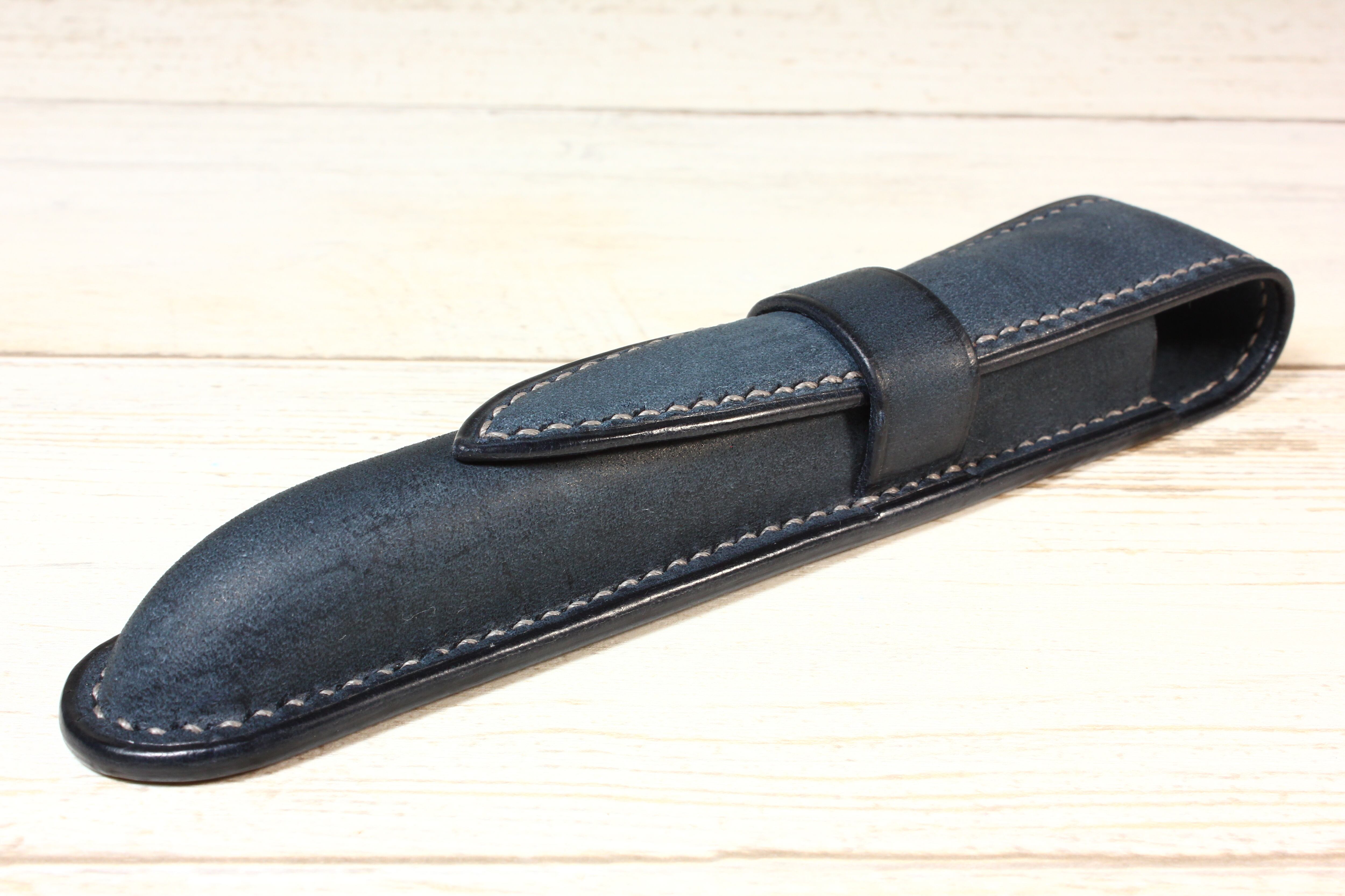 絞り技法の万年筆ケース【一本差し】(サッビアレザー)