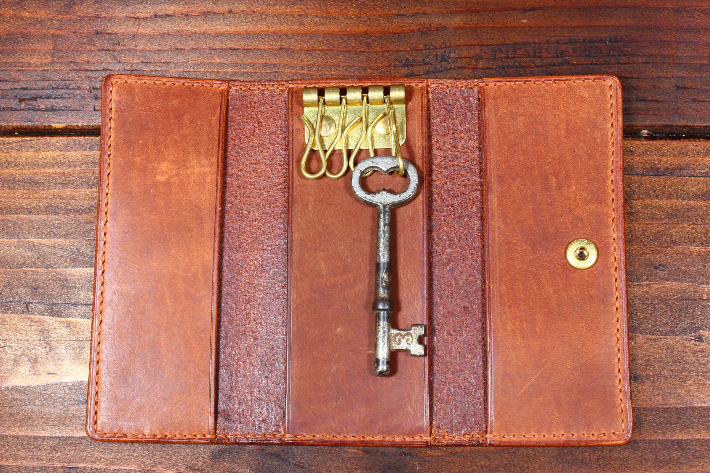 シックなサッビアの革とレトロな真鍮無垢の金具を組み合わせた日常使いに最適なキーケースです。(アンティークキーは撮影用小物のため付属いたしません。)