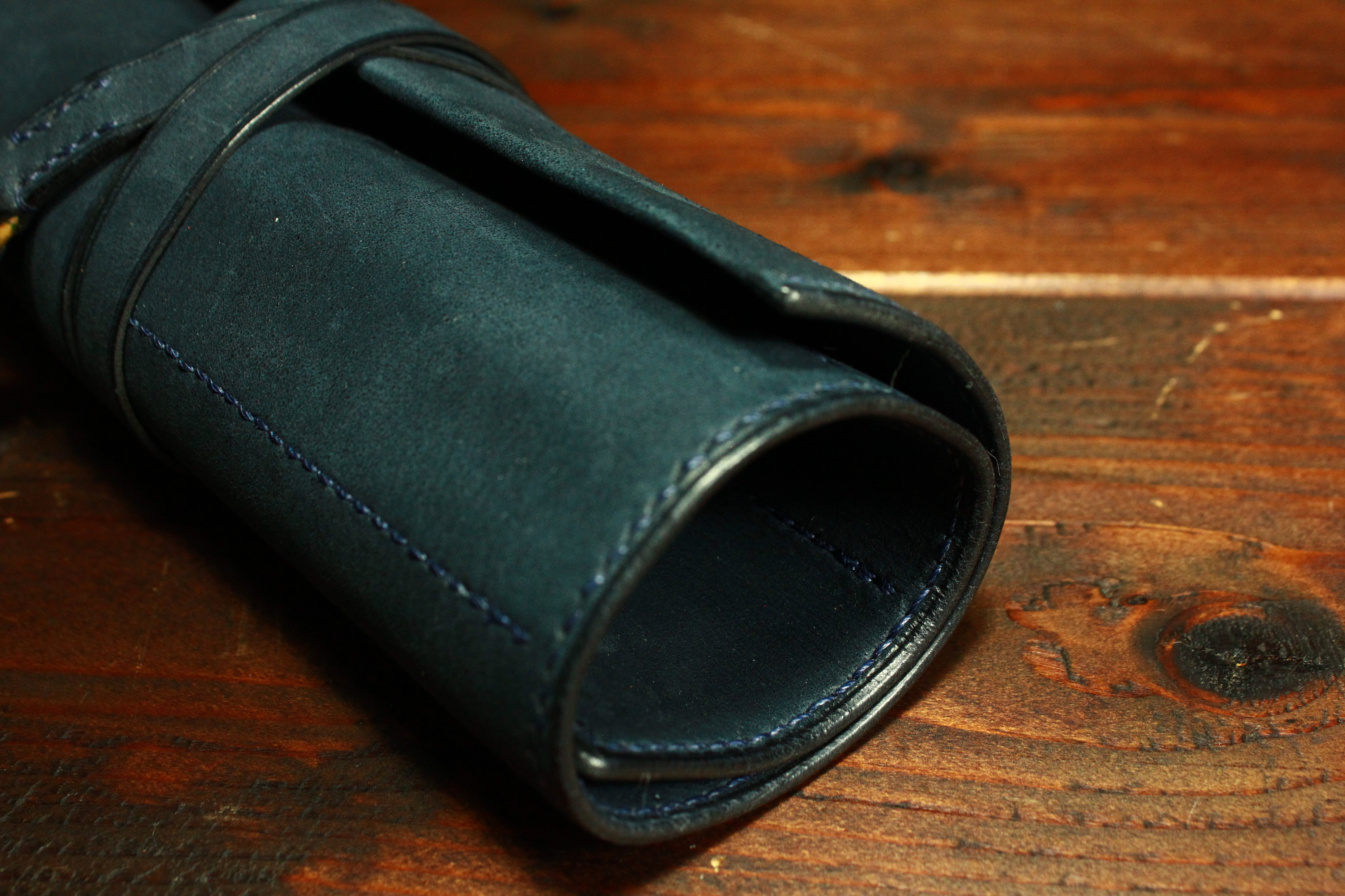 大量生産品では被せの長さが短いものが多く、ペンを入れて巻いた時にペン同士がぶつかりボディに傷がつくことがありまして。