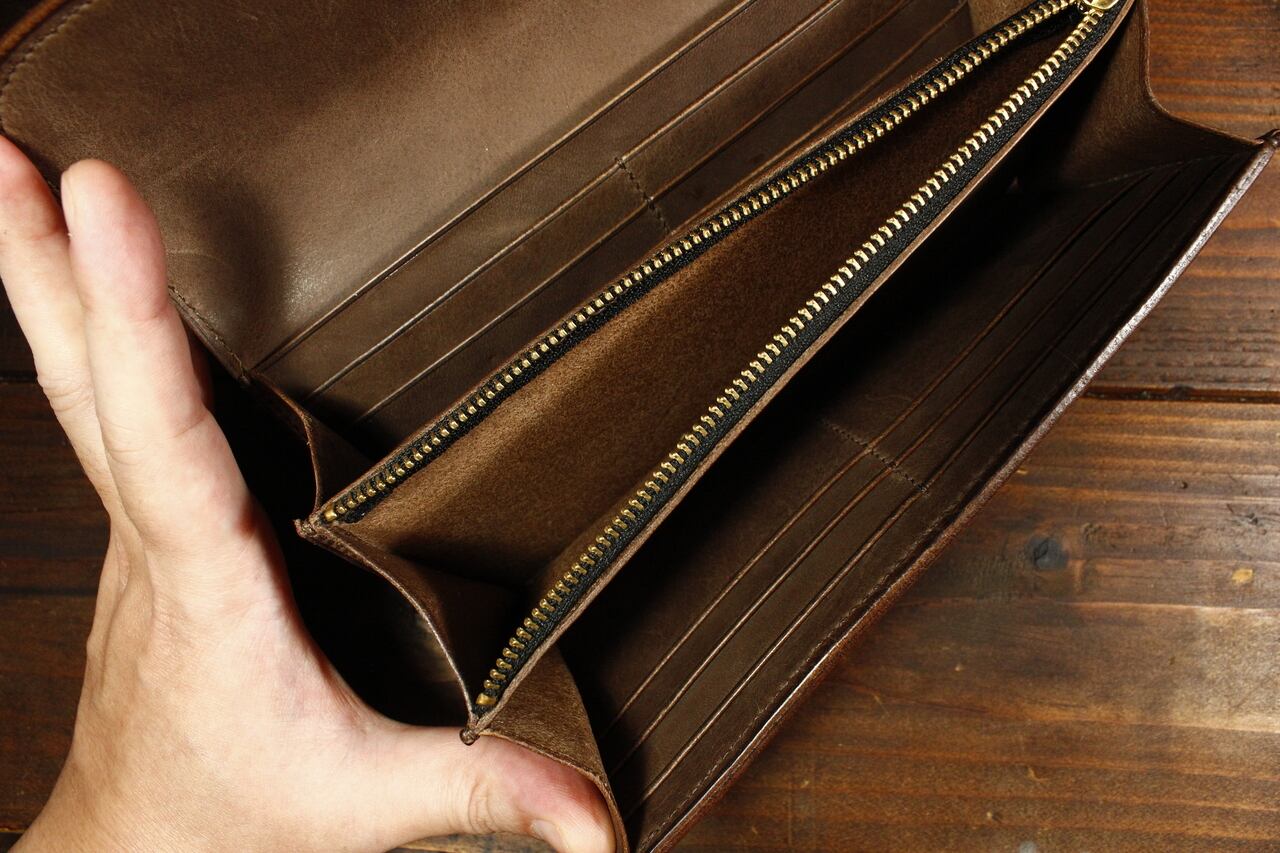 小銭入れ部分も含めてしっかりとマチを入れた、たっぷり入るお財布です。